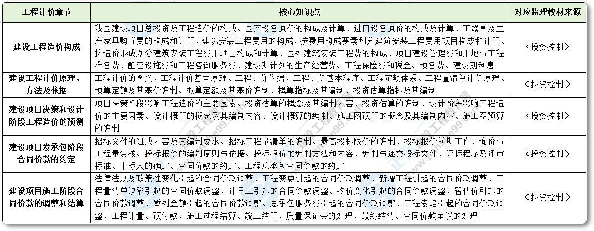 重合特点:“建安组成”“价款调整”模块与监理《投资控制》内容高度重合,考生可直接复用监理知识。