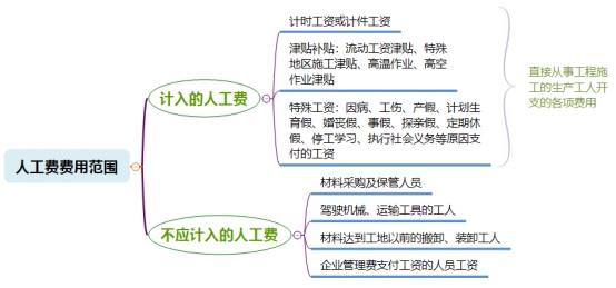 具体人工费的计取范围和不应计入的费用,可参考以下图示: