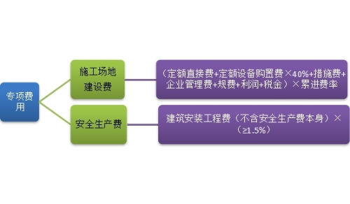 专项费用由两部分组成,包括施工场地建设费和安全生产费。