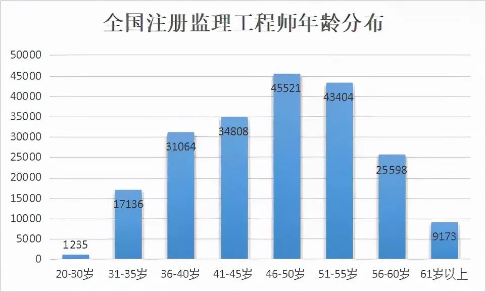 3)从年龄分布来看,一级建造师的年龄集中在31岁到35岁,而注册监理工程师、注册造价工程师则集中在46岁到50岁。