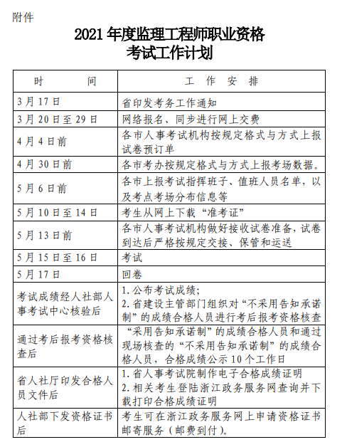 浙江关于做好 2021 年度监理工程师职业资格考试考务工作的通知,监理工程师报名时间:3月20日-29日,具体内容如下。