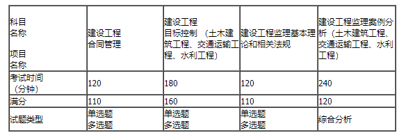监理工程师职业资格考试各科目设置