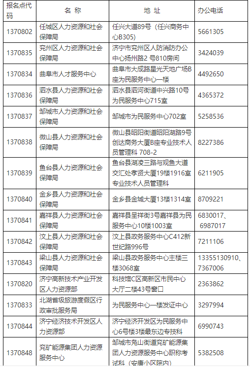 各县(市、区)人力资源社会保障局、济宁高新技术产业开发区人力资源部、济宁经济技术开发区人力资源部、北湖省级旅游度假区行政审批服务局、兖矿能源集团人力资源服务中心: