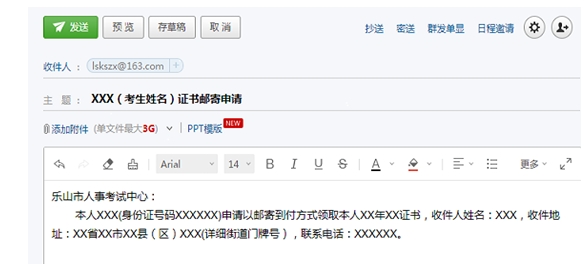 如需邮寄领取,请将本人手持身份证照片及领证申请发送至乐山市人事考试中心电子邮箱,并来电告知申请办理。