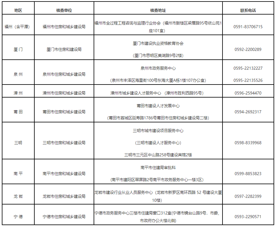 (八)考后资格核查时间、发放证书时间及方式以“福建省住房和城乡建设厅http://zjt.fujian.gov.cn/—行业管理—执业注册—资格考试”栏目通知为准。