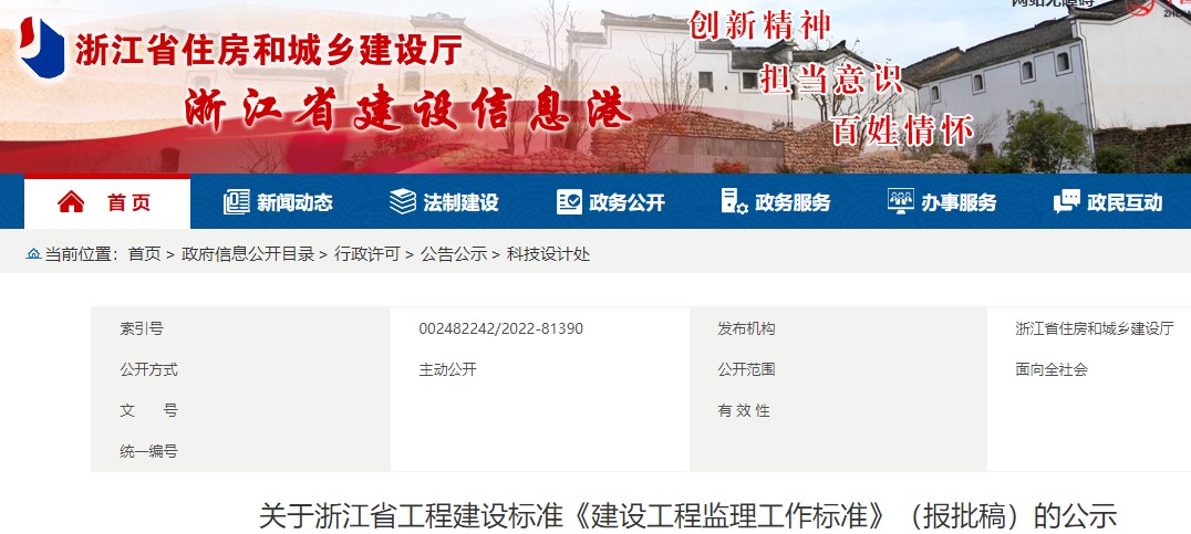 关于浙江省工程建设标准《建设工程监理工作标准》(报批稿)的公示