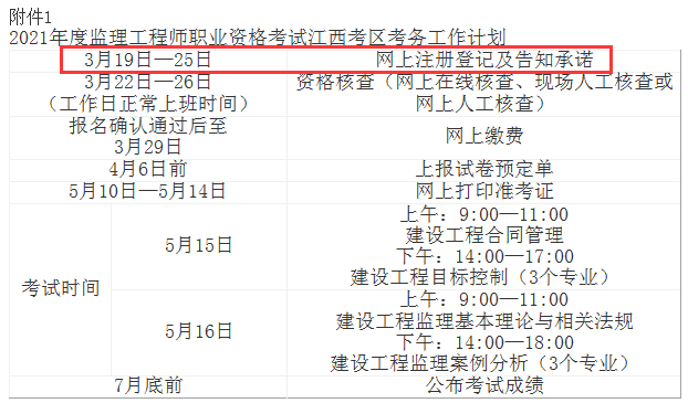 江西发布关于做好2021年度监理工程师职业资格考试江西考区考务工作的通知,其中公布了江西监理工程师报名时间为3月19-25日,具体内容如下:
