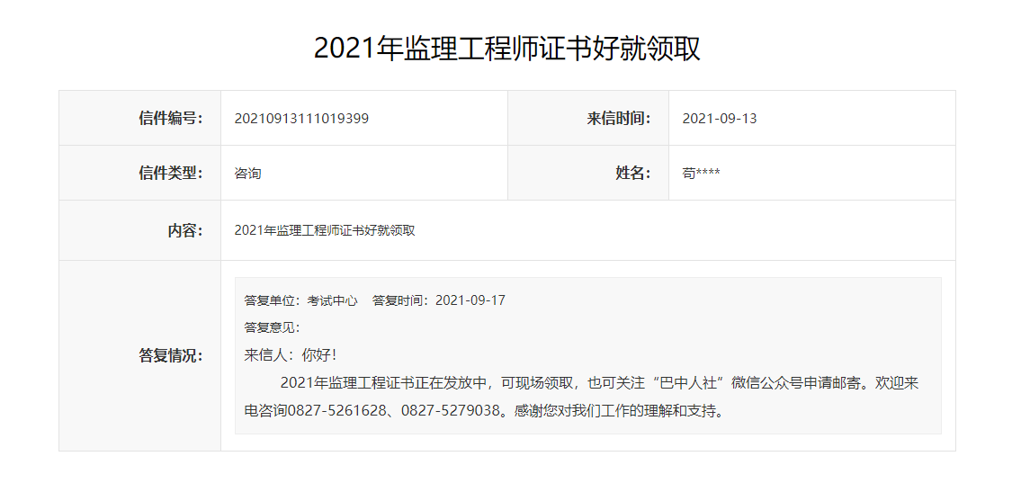 巴中市人力资源和社会保障局发布了领取监理工程师证书的时间,具体内容如下: