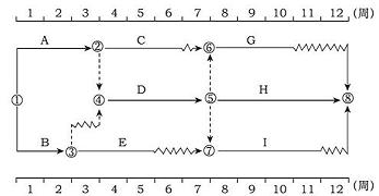 【答案解析】 本题考查的是时标网络计划中时间参数的判定。工作的总时差:(1)以终点节点为完成节点的工作,其总时差应等于计划工期与本工作最早完成时间之差;(2)其他工作的总时差等于其紧后工作的总时差加本工作与该紧后工作之间的时间间隔所得之和的最小值。据此计算,工作I的总时差为1周,工作H的总时差为0周,工作G的总时差为2周,工作D的总时差为min{1,0,2}=0(周),工作E的总时差为2+1=3(周),则工作B的总时差为min{1+0,0+3}=1(周)。参见教材P63。