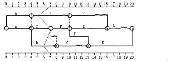 当工程进行到第7个月末时,进度检查绘出的实际进度前锋线如图4.1所示。