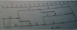 【解析】本题考查的是时标网络计划中时间参数的判定。工作C的最早开始时间可以直接由图可得,为3天;工作C的总时差=min{1,3+2}=1天。参见《进度控制》教材P62~63。