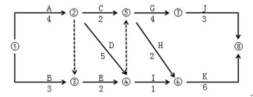 某工程双代号网络计划如下图所示,其中工作G的最早开始时间为( )。