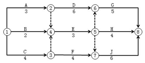 【答案解析】 本题考查的是标号法。关键线路:①→②→⑥→⑧和①→③→⑦→⑧。计算工期=3+6+5=14,E工作最早开始时间是4,最迟开始时间是5。参见教材P54。