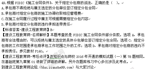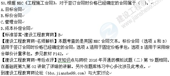 2016年监理工程师《建设工程合同管理》答案及解析由老师整理而成,部分网站未经许可擅自转载、抄袭,造成内容有所缺失或错误,请大家以建设工程教育网发布为准!