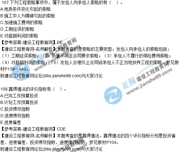 2017年监理工程师考试于5月20日、21日举行,考试过后,广大考生最关心的问题莫过于“2017年监理师质量、投资、进度控制试题及答案(101-110)”了,建设工程教育网将会根据学员反馈,及时汇总2017监理试题相关信息分享给大家,并且会及时做出答案解析,希望能为广大监理考生朋友带来帮助。