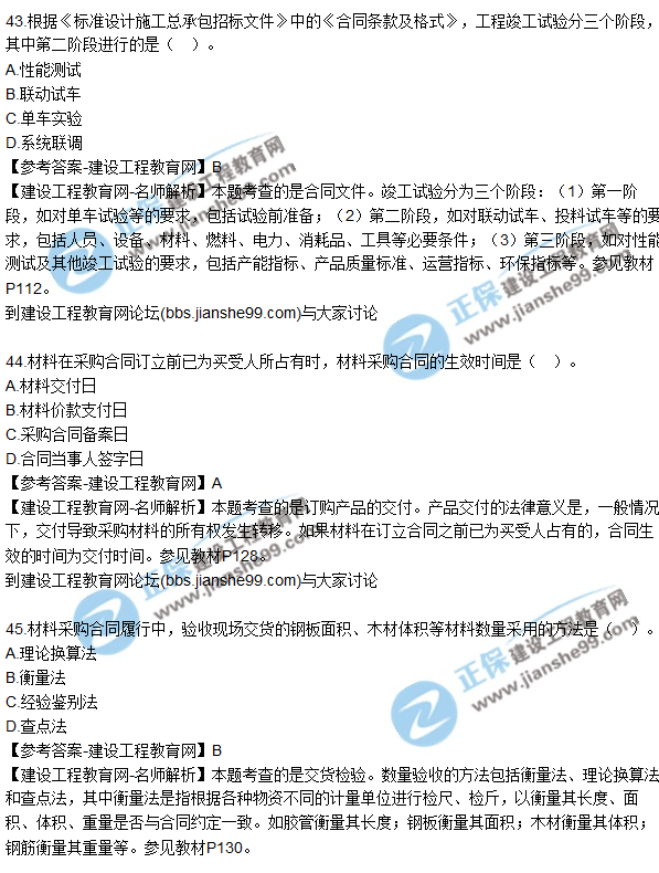 2017年监理工程师考试于5月20日、21日举行,考试过后,广大考生最关心的问题莫过于“2017年监理工程师《建设工程合同管理》试题及答案(41-50)”了,建设工程教育网将会根据学员反馈,及时汇总2017监理试题相关信息分享给大家,并且会及时做出答案解析,希望能为广大监理考生朋友带来帮助。