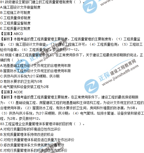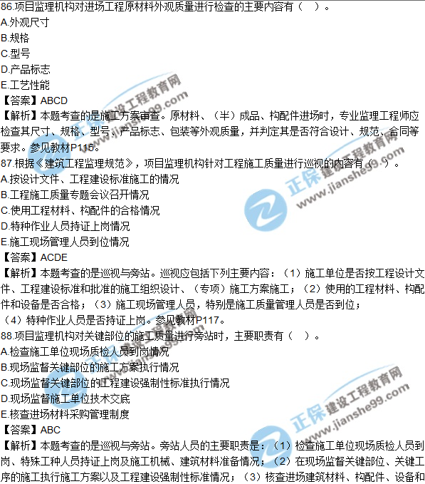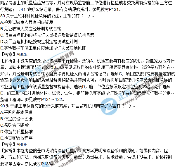 2018年监理《建设工程质量、投资、进度控制》试题及答案多选(81-90)