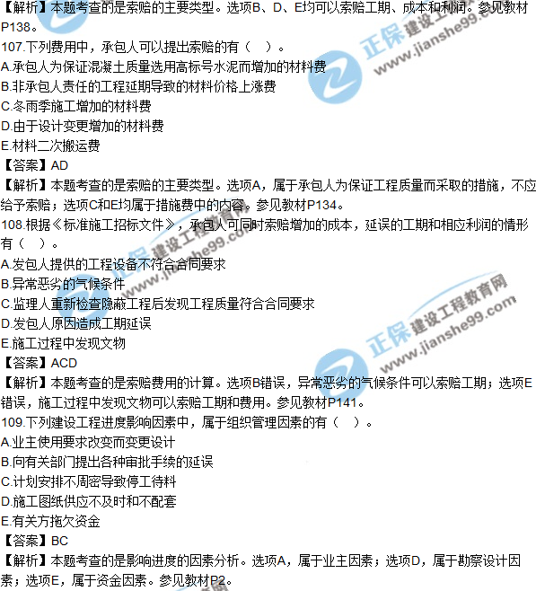 2018年监理《建设工程质量、投资、进度控制》试题及答案多选(101-110)