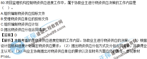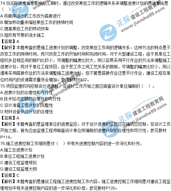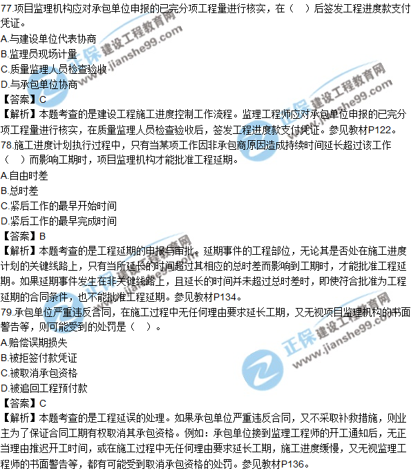 2018年监理《建设工程质量、投资、进度控制》试题及答案单选(71-80)