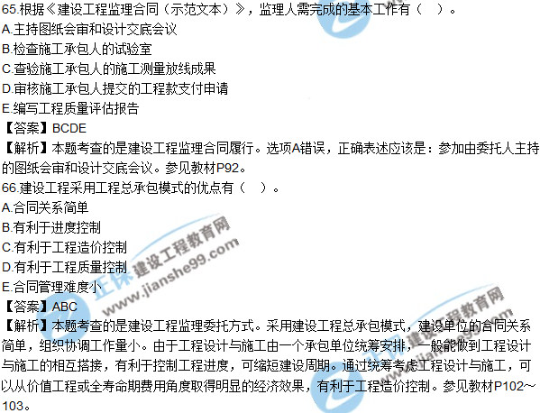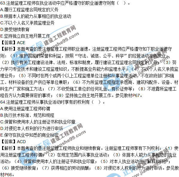 2018年监理工程师《法规》试题及答案多选(61-70)