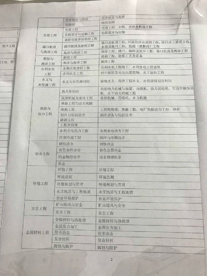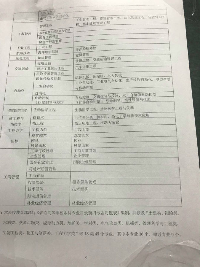 注:本表按教育部现行《普通高等学校本科专业目录新旧专业对照表》编制,共涉及“土建类、测绘类、水利类、交通运输类、能源动力类、地矿类、材料类、电气信息类、机械类、管理科学与工程类、生物工程类、化工与制药类、工程力学类”等18类45个专业,其中本专业36个,相近专业9个。