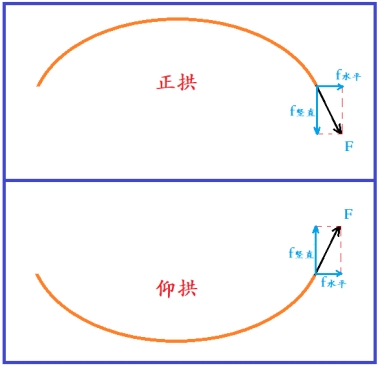 那么所谓仰拱,那么就是向上弯曲的啦。由于拱的拱脚位置的力的传递是随着拱的弧线的,那么通过力的正交分解就可以分解成水平方向和竖直方向的力。这么设置为的是能够对于围岩起到支撑的作用。