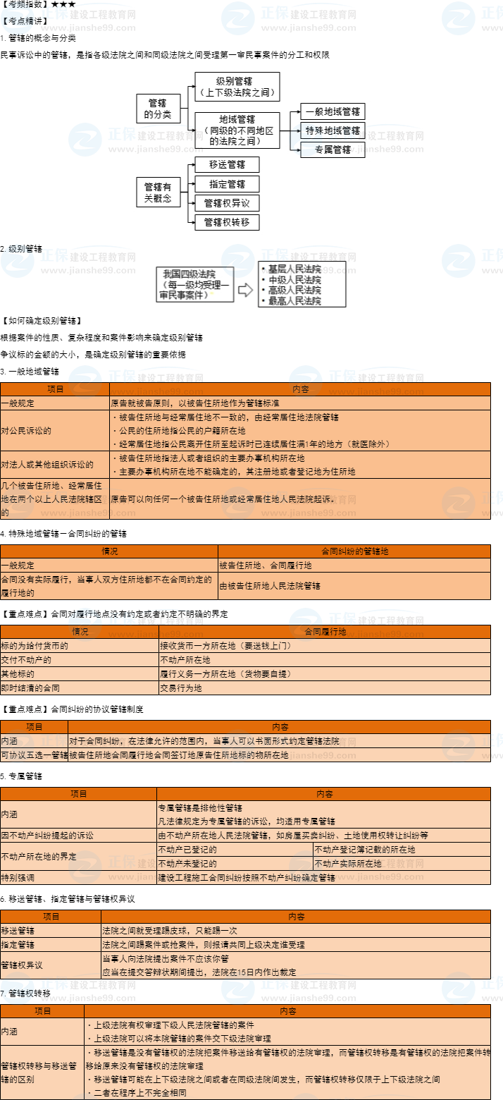 一建工程法规知识点27:民事诉讼的管辖