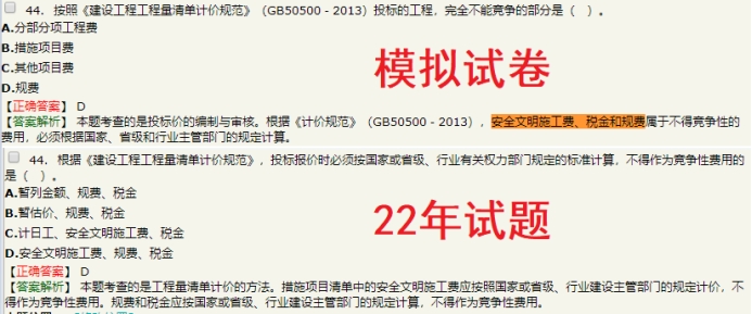 超过85%的知识点,基础班均讲解过;经过基础班学习,再通过其他班次综合学习,命中率则可达95%。通过基础阶段的学习,再通过习题班、高频知识点等强化。以及冲刺串讲的巩固加强。最后再来几套模拟、预测做做,基本可以涵盖考试全范围。如果您备考较晚或没有时间。也不用担心,据统计,2022年网校仅41页的《冲关宝典》覆盖的精确考点就达到了80%;最后以知识点形式体现的《考前重点资料》(三页纸)知识点覆盖率达到了76%。所以,如果自己学,应对现在的考试会相对吃力很多,但跟着网校的班次走,掌握网校讲过的知识点,考试通过真的那都不是事。