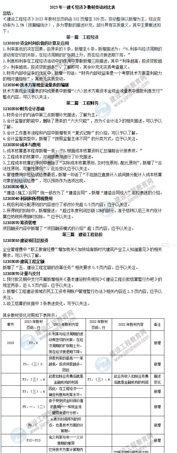 2023年一级建造师新教材变化大吗?变动有哪些?建设工程教育网老师为考生们整理了《工程经济》新旧教材变化对比解析,抢先看起来!