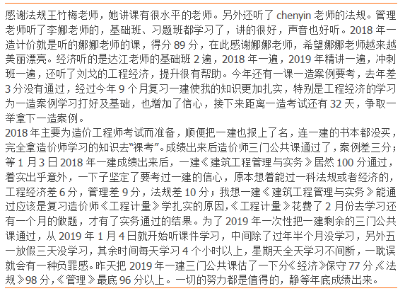 一建考完了,你考的怎么样呢?小编在考后看到了许多学员们对老师们的感谢。一建的备考过程是老师们与大家共同努力奋斗的历程,在感谢老师的同时,也要感谢在备考时坚持不懈、努力奋斗的自己呀!