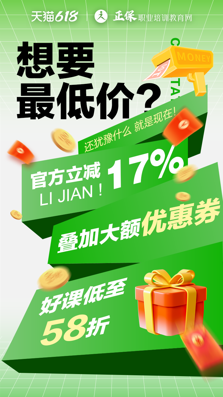 天猫618-正保职业培训教育网旗舰店活动来了!不要犹豫,不要等待,机会就在眼前!