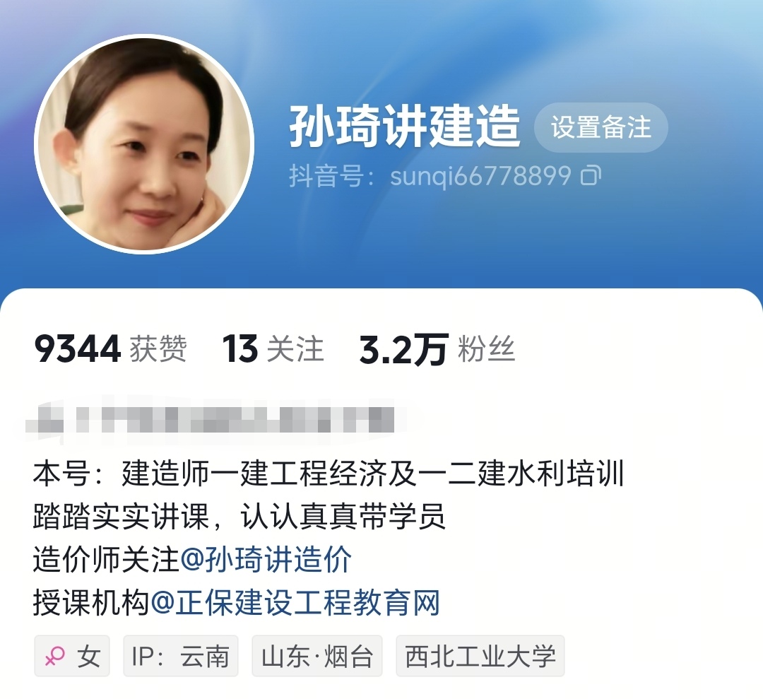 孙琦老师一建课程抖音热售中!孙琦老师作为正保建设工程教育网的资深合作名师,其课程凭借专业性强、考点精准、讲解透彻的特点,深受学员好评!现已在抖音平台上线,助你高效备考,轻松通关!