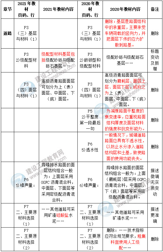 2021一级建造师市政工程新教材正式发布,究竟一建市政新教材变化有哪些?大约变了多少?根据同学们关注的话题,建设工程教育网为考生们整理了2021年一建《市政公用工程管理与实务》新旧教材对比解析,快来加入收藏!