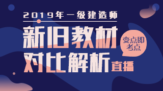 2019年一级建造师教材5月9日上市,教材变点即考点。建设工程教育网特邀业内老师对新旧教材进行对比解析直播,内含直播/录播和文字解析。点击进入>>