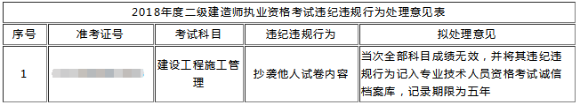 2018年度二级建造师执业资格考试违纪违规拟处理公告(补)