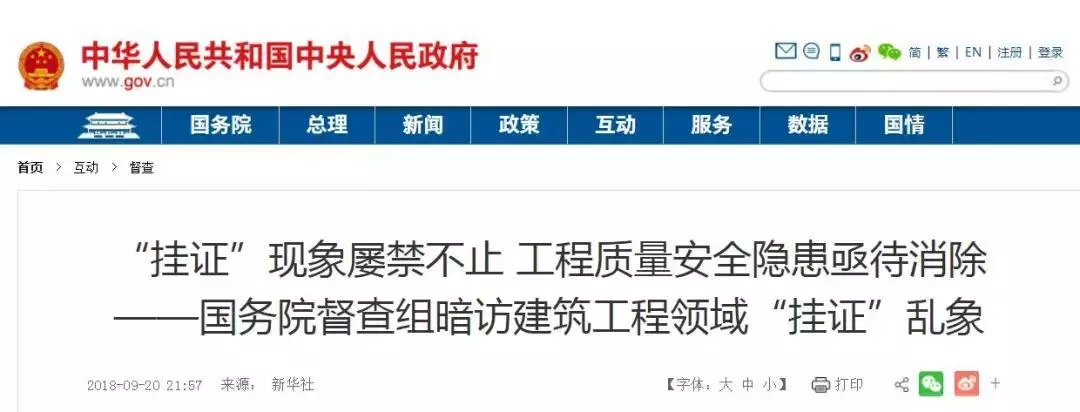 证书俗称“挂证”,是指个人将自己的资质证书到非供职企业名下,以获取报酬的行为,被《行政许可法》《建筑法》《招投标法》明令禁止。督查组发现,在建筑工程领域已经发展形成明码标价、品类齐全、规模庞大的非法“挂证”中介服务市场,提供“培训—考证—注册—”一条龙服务的黑中介遍布网络和各大城市。