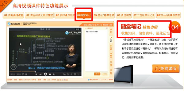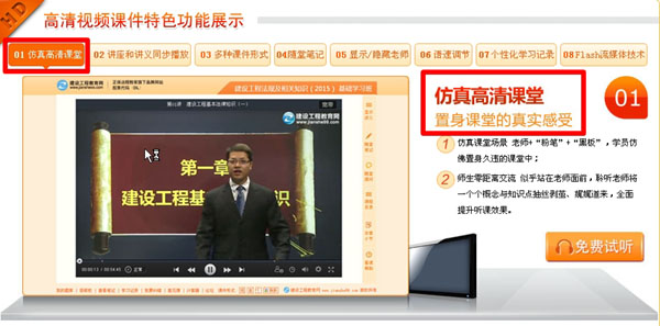 老师 +“粉笔”+“黑板”构成最为熟悉的课堂场景,学员仿佛置身于久违的课堂。目前,网校2015年一级建造师基础学习班、习题精讲班已经开通,考生可以突破时间与地点的限制,在电脑、手机、平板上自由看课、练习。高清课件拥有8大功能,你值得拥有!