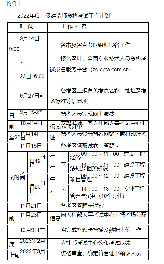 (一)各设区市人力资源社会保障局、住房城乡建设局根据职责分工,按照《2022年度一级建造师资格考试工作计划》(附件1)的要求,认真做好各个环节的考务工作。考试报名期间应安排专人值班,做好咨询服务工作。