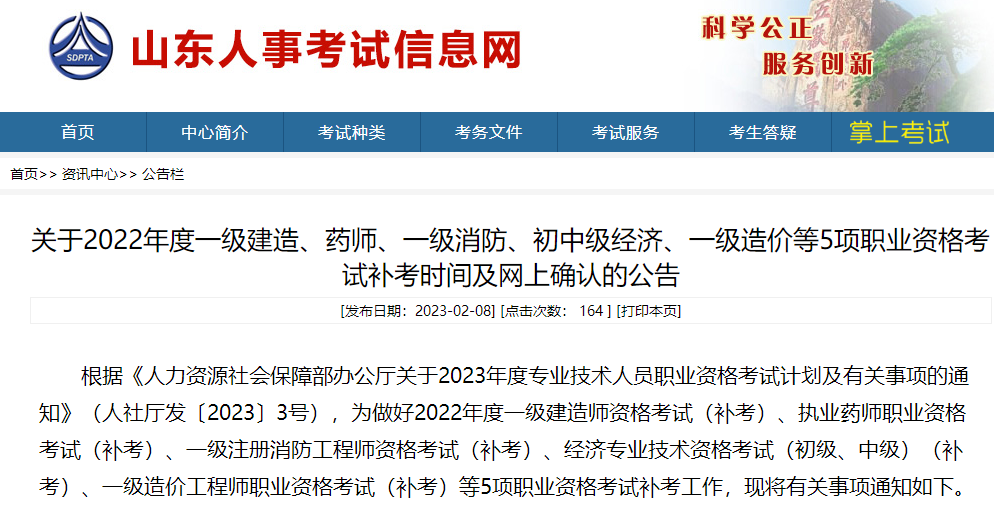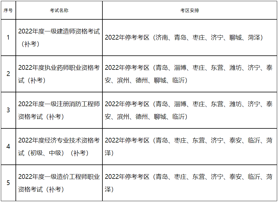 根据《人力资源社会保障部办公厅关于2023年度专业技术人员职业资格考试计划及有关事项的通知》(人社厅发〔2023〕3号),为做好2022年度一级建造师资格考试(补考)、执业药师职业资格考试(补考)、一级注册消防工程师资格考试(补考)、经济专业技术资格考试(初级、中级)(补考)、一级造价工程师职业资格考试(补考)等5项职业资格考试补考工作,现将有关事项通知如下。