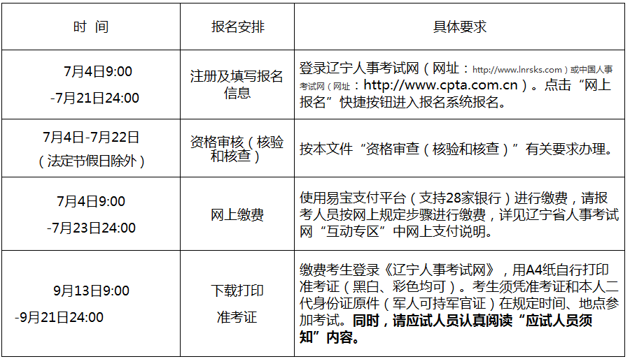 1.报名流程。注册(信息在线核验、上传照片)、填写报考信息(阅读告知承诺书及报考须知、签署“报考承诺书”)、报名确认、资格审核(报考信息核验、核查)、缴费、打印准考证等环节。
