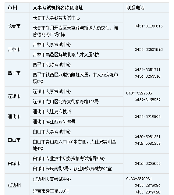 附件:吉林省人事考试机构现场人工核查地点及联系方式