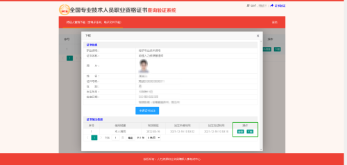 点击[同意]按钮后,即可进入持证人查询下载(含电子证书、电子文件下载)页面。
