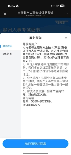 2、邮寄服务办理流程:扫描中国邮政邮寄业务二维码—填写考生信息—核对考生证书信息—上传考生本人手持身份证照片—填写收件地址—系统自动计费—线上支付—邮寄送达。