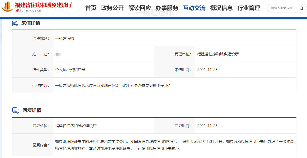 福建省住房和城乡建设厅收到学员提问,一级建造师纸质版未过有效期现在还能不能用?是否需要更换电子证?关于这个问题,福建省住房和城乡建设厅给出以下答复: