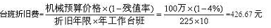 某施工机械预算价格为100万元,折旧年限为10年,年平均工作225个台班,残值率为4%,则该机械台班折旧费为( )元。 A.426.67 B.444.44 C.4266.67 D.4444.44