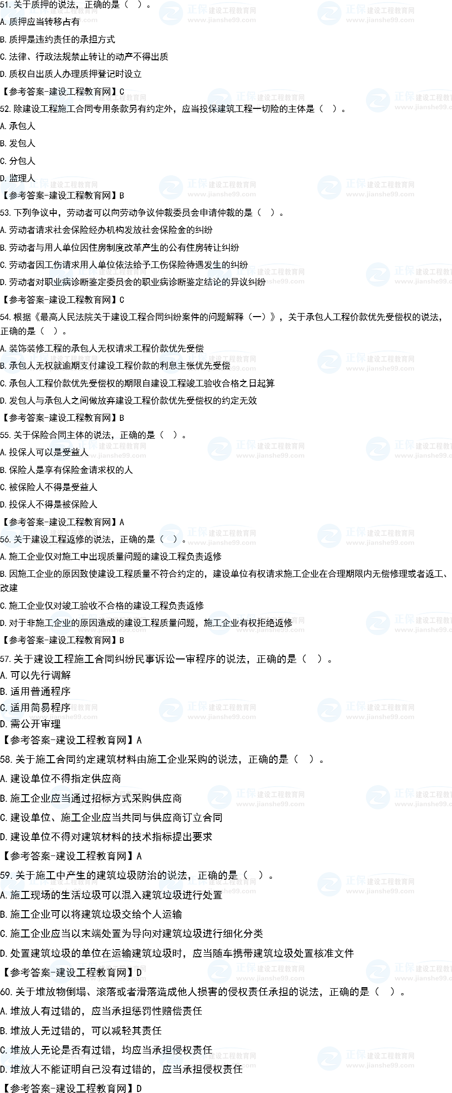 2022年一级建造师补考工程法规试题及答案51-60题。建设工程教育网考后将会根据学员反馈,及时汇总2022年一级建造师工程法规补考试题及答案分享给大家,并且会及时做出答案解析,希望能为广大一建考生朋友带来帮助。
