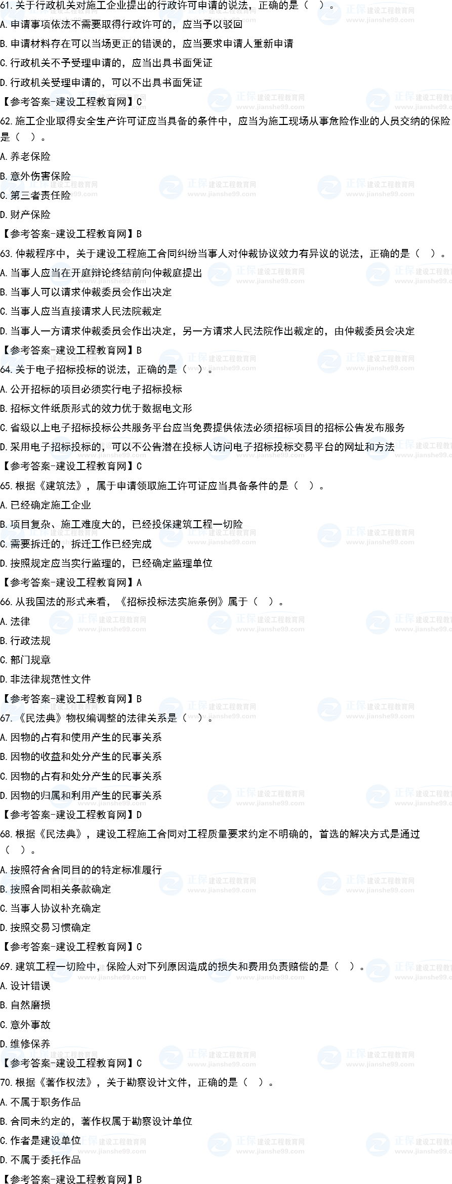 2022年一级建造师补考工程法规试题及答案61-70题。建设工程教育网考后将会根据学员反馈,及时汇总2022年一级建造师工程法规补考试题及答案分享给大家,并且会及时做出答案解析,希望能为广大一建考生朋友带来帮助。