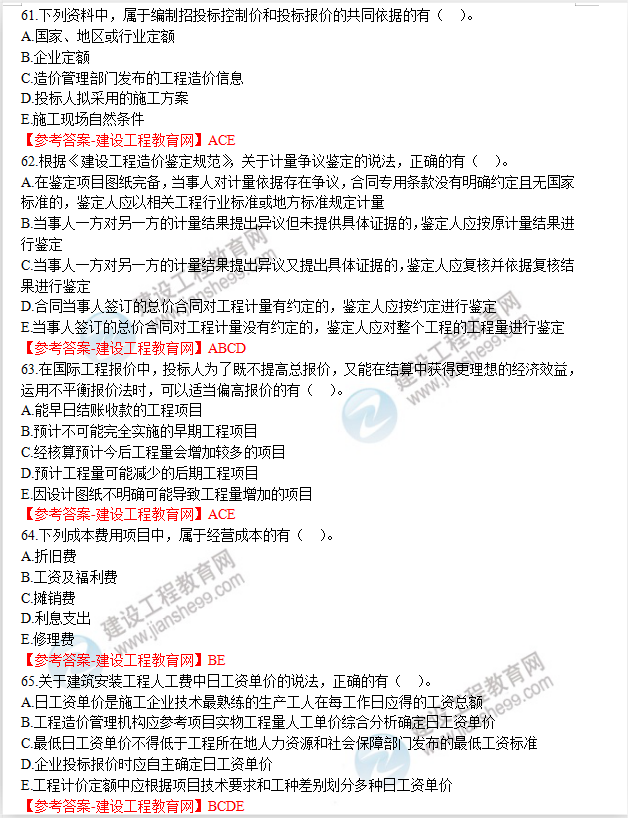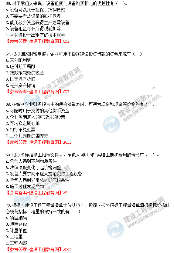 2019年一级建造师《工程经济》试题答案及解析61-70