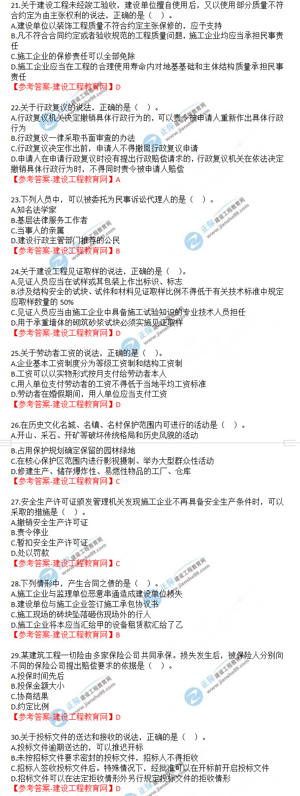 2019年一级建造师《建设工程法规及相关知识》试题答案及解析21-30