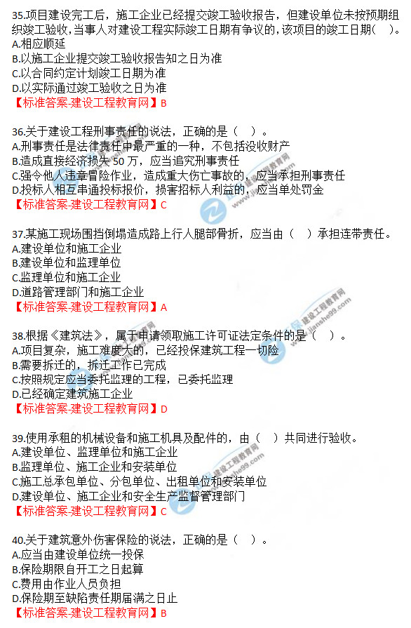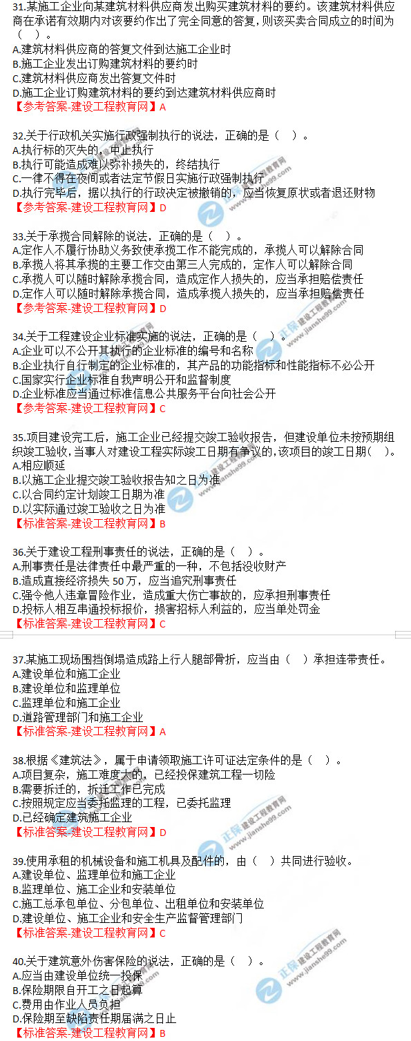 2019年一级建造师《建设工程法规及相关知识》试题答案及解析31-40